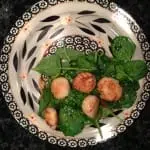 - Put the Scallops over the Wilted Garlic Spinach and drizzle with the sauce.