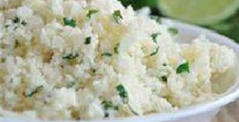 Remove the core and let the cauliflower dry completely. Coarsely chop into florets, then place half of the cauliflower in a food processor and pulse until the cauliflower resembles rice – don’t over-process or it will get mushy. Set aside and repeat with the remaining cauliflower. Heat a large sauté pan over medium heat, add olive oil, scallions and garlic and sauté about 3 to 4 minutes, or until soft. Raise the heat to medium-high. Add the cauliflower “rice” to the sauté pan. Cover and cook approximately 5 to 6 minutes, stirring frequently, until the cauliflower is slightly crispy on the outside but tender on the inside. Season with salt and pepper to taste. Remove from heat and place in a medium bowl; toss with fresh cilantro and lime juice to taste.