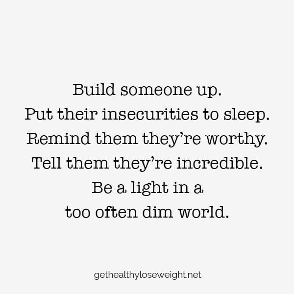 Build someone up. Put their insecurities to sleep. Remind them they’re worthy. Tell them they’re incredible. Be a light in a too often dim world.