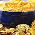 Meanwhile, mix all dip ingredients until smooth, and transfer dip mixture to a small, lightly-greased baking dish.